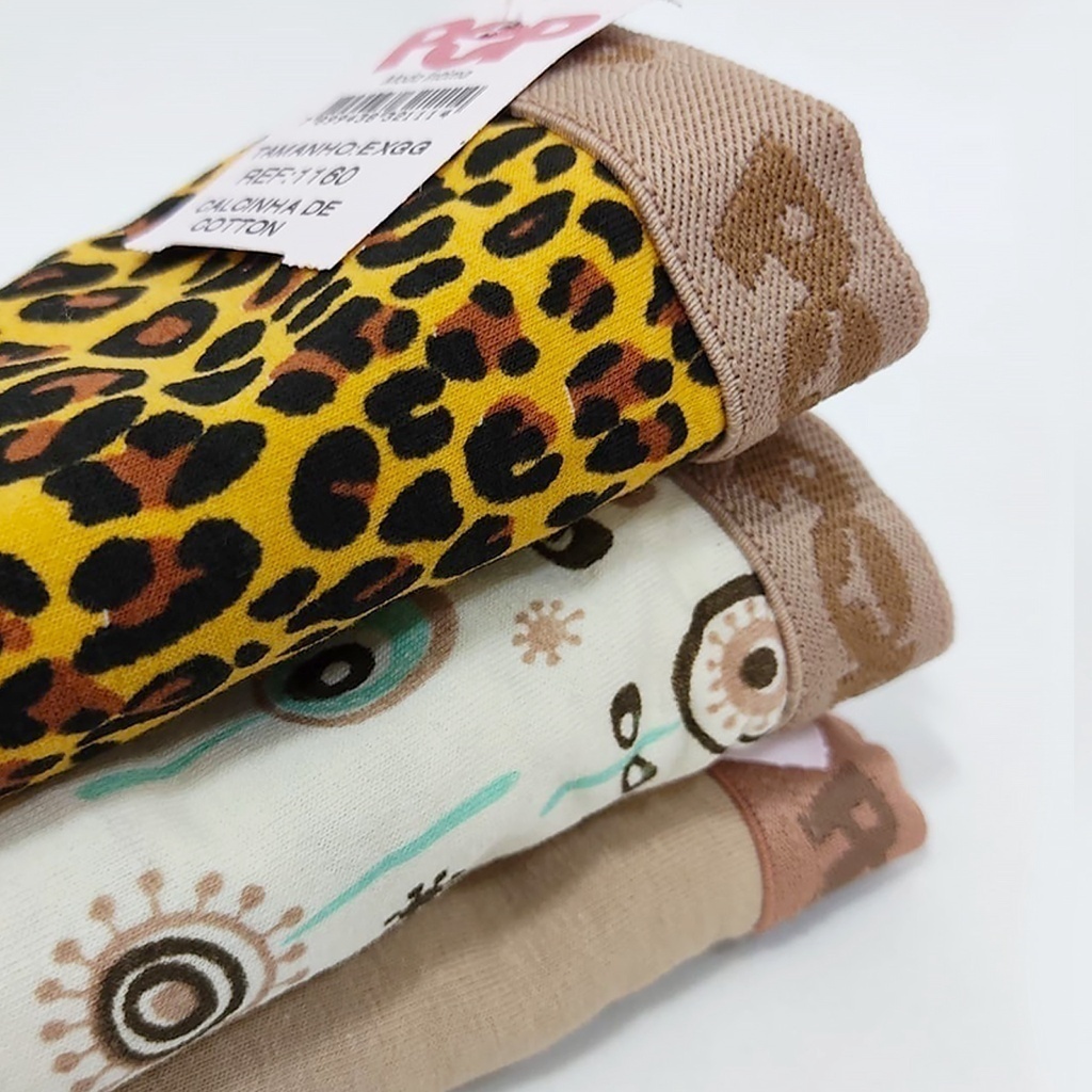 Os kits acompanham calcinhas de cores/estampas sortidas PODENDO HAVER REPETIÇÃO caso haja falta de disponibilidade em estoque. Faremos o possível para enviar cores/estampas diferentes.