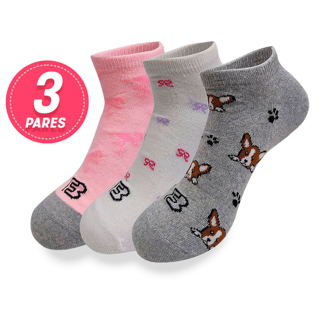KIT com 3 Pares de Meias Estampadas.